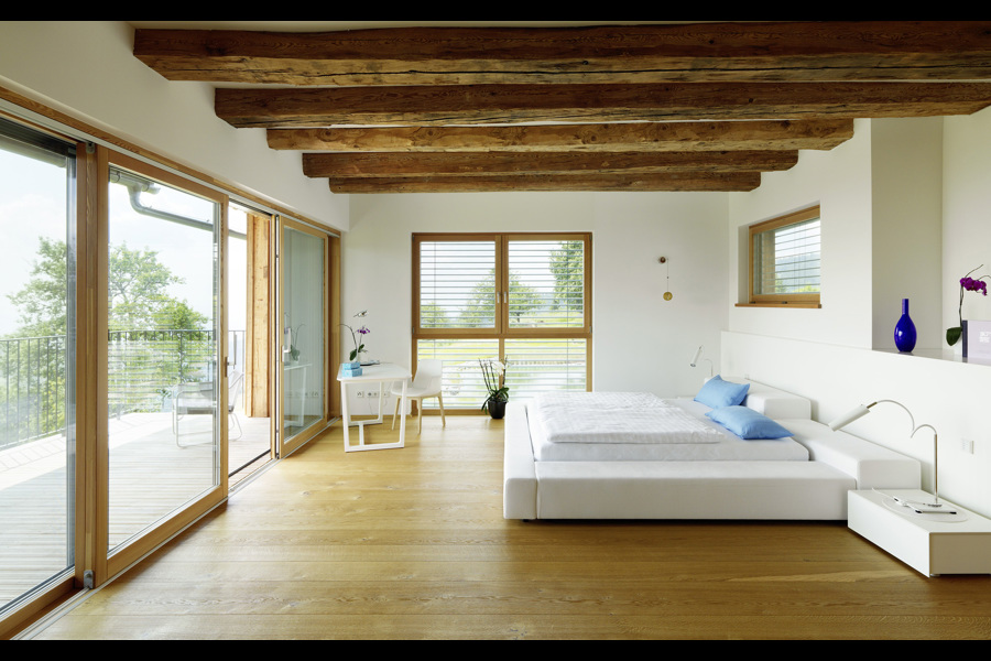 A clear colour on the inside of timber frames brings out the feeling of nature and warmth and is very much on trend. Colours on the outside include now often a dark shade like anthracite or a cool grey for a crisp and modern look. To achieve an even finish, the paint, stain or lasur gets applied by a spray-painting robot at the Paarhammer manufacturing plant. All finishings are low-VOC.