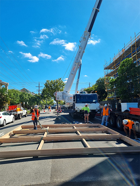 All window products were custom-made to include oversized elements which capture sunlight, views and trees in the landscape, amplifying a sense of calm and engagement. The composite timber windows with external aluminium cladding are triple glazed with low-E glass and with a window U-value of under 1, and include a 35m2 unit of 5770w x 5828h in size, divided into 9 fixed panes. Engineered timber sections were used to deal with high wind load, restrict timber movement and further increase strength and stability.